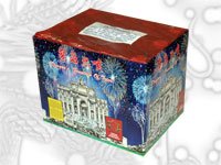16 shots of white strobe willows w/ blue & purple cores with rising peony tails, & time rain willows with yellow and red cores w/ rising tails and time rain starmines.