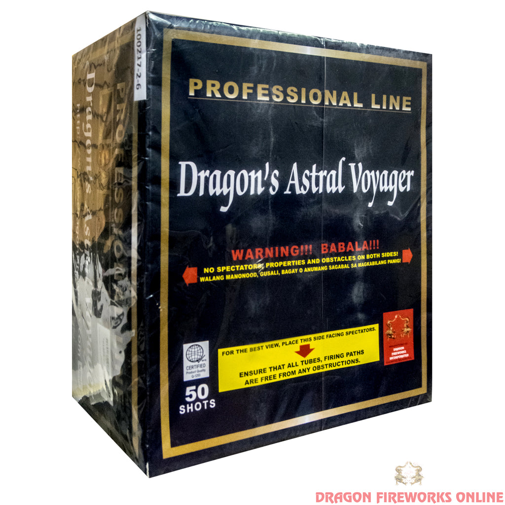 50 shots of red, orange, yellow, green, blue, and purple peony w/ crackling dahlia and wave tails, and multicolored peony w/ titanium flowers w/ silver tails and titanium crackle starmines fired in 5-directional moving Z-formation.